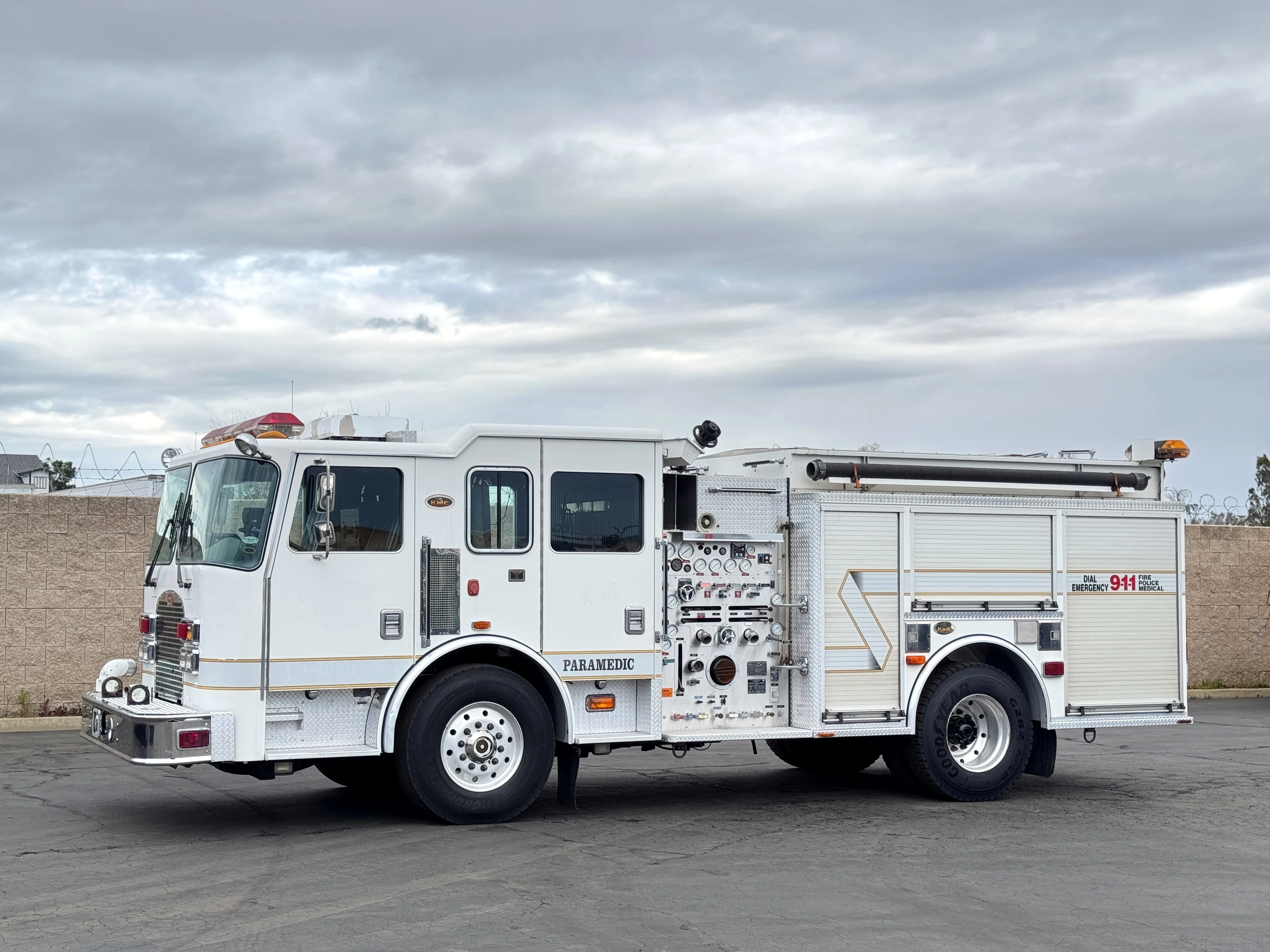 1317 Vinci Ave. Sacramento, CA 95838![]() 2000 KME FireHawk Fire Pumper, Detroit Diesel Series 60 12.7L, Allison HD4060_PR Auto Transmission, 93,597 Miles, A/C, 42,000 GVW, Crew Cab - Seats 6 (2 SCBA Seats), Transmission Retarder, Inverter (476 Hours), Emergency Sirens and Lights, Storage Shelves and Compartments, KME Fire Apparatus Body Water Pump: Hale QTW0125-23L, 1,251 GPM @ 150 PSI, 600 Gal Tank (823 Hours) Very Clean & Well-Maintained Ex-Gov't Unit | General Information