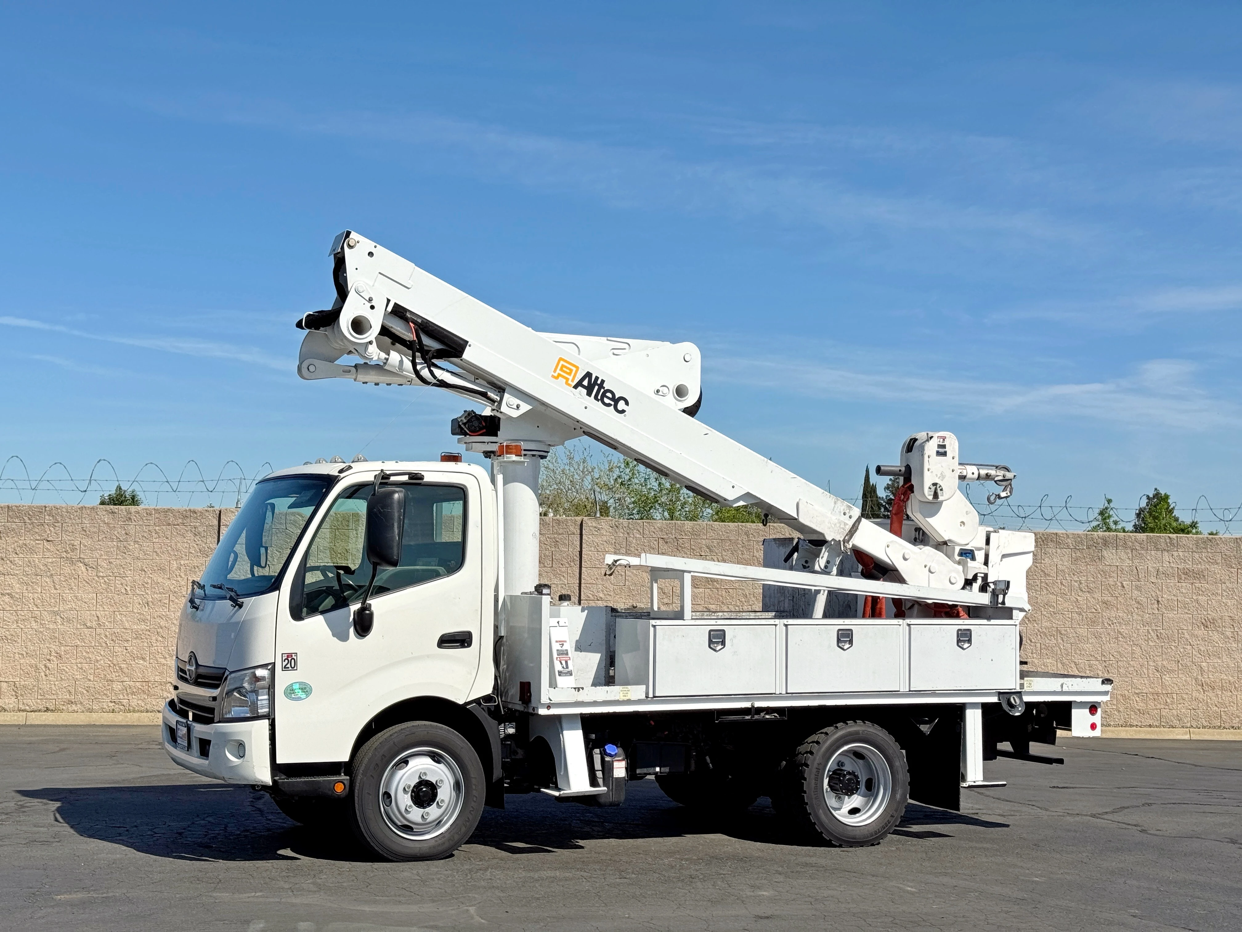 1317 Vinci Ave. Sacramento, CA 95838![]() 2015 Hino XJC700 Bucket Truck, Hino J05E-TP Diesel Engine, Auto Trans, 129,527 Miles, A/C, 19,500 GVW, Altec AT40M Articulating Telescopic Lift, 3,662 PTO Hours, 45' Working Height, Continuous Rotation, 400 lbs Capacity, Single Man Basket, Pistol Grip Upper Controls, (4) Hydraulic Outriggers, Storage Compartments, Clean Unit | General Information