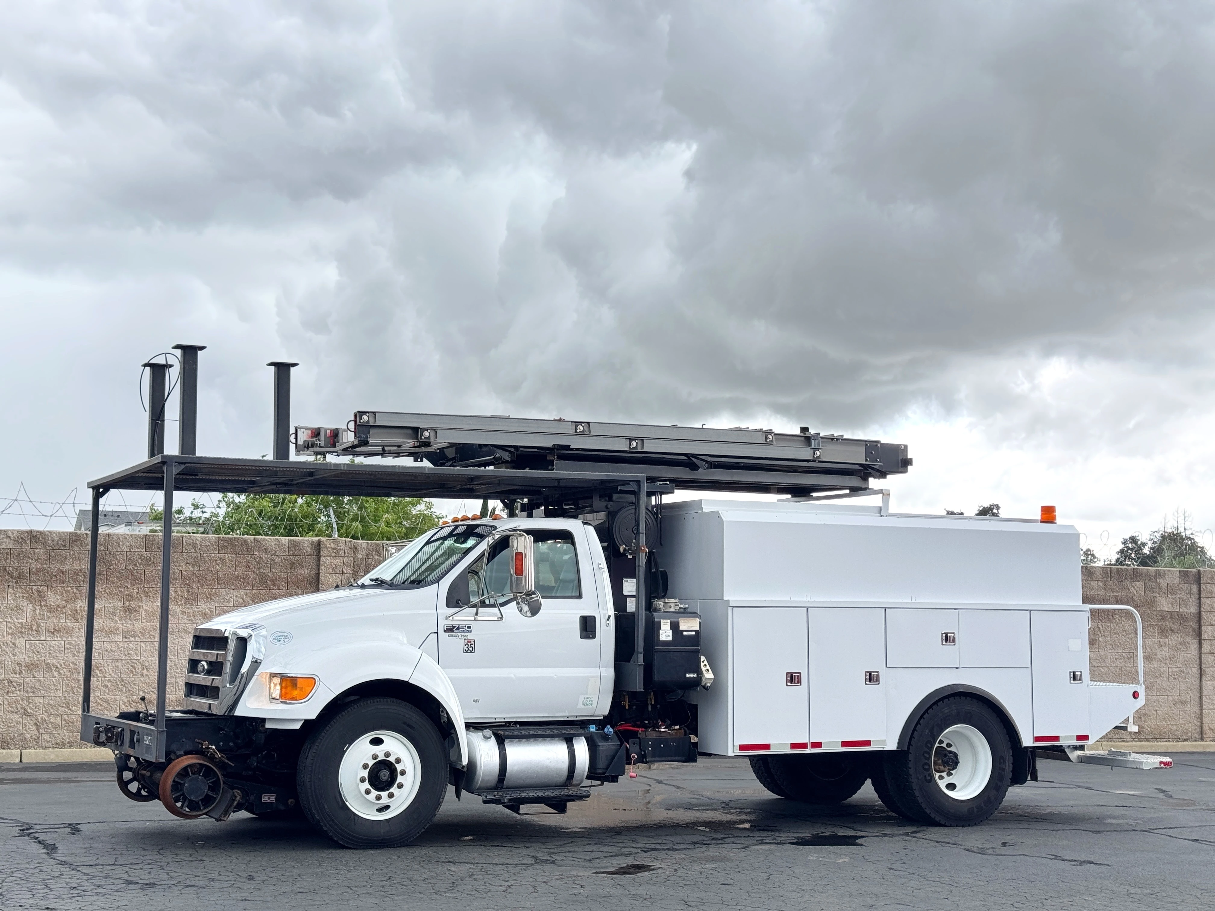 1317 Vinci Ave. Sacramento, CA 95838![]() 2013 Ford F750 Hi-Rail Gear Truck, Cummins ISB 6.7L Diesel Engine, Allison 2500RDS Auto Trans, Only 19,663 Miles, A/C, 33,000 GVW, Delphi Body Challenger 3425 Platform Lift, 12' x 4' Lift, 1,000 Rated Load, 360 Degree Continuous Rotation, Storage Shelves and Compartments, Very Clean Unit | General Information